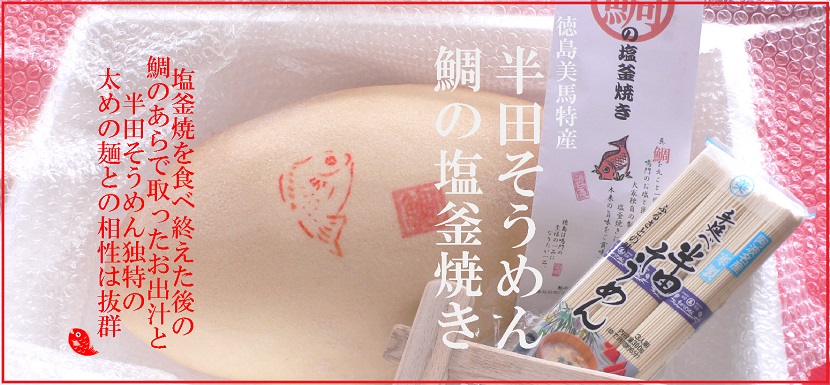 鯛の塩釜焼と徳島美馬の半田そうめんのセット
