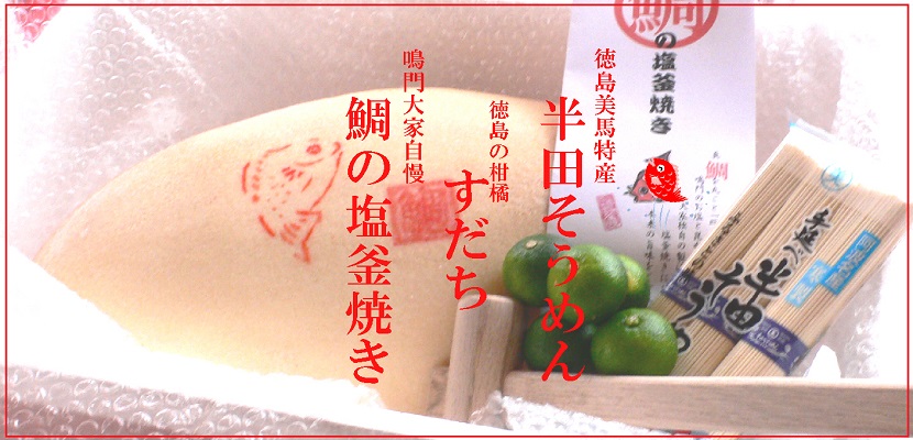 和の職人が一つ一つ丁寧に焼き上げた鯛の塩釜焼きと共に徳島を代表するすだちとそうめんを 全国のおめでたいお席にお届け致します。